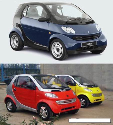 Nampaknya China bersungguh-sungguh mahu menjadi peneraju ekonomi dunia sehingga sanggup melakukan apa sahaja termasuklah menghasilkan produk tiruaan. Antaranya adalah kereta. Gambar di bawah ni adalah kereta tiruan dari China yang ditiru dari jenama kereta antarabangsa.